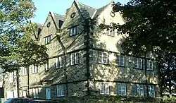 | Kimberworth Manor House 53°26′05″N 1°23′28″W / 53.43461°N 1.39121°W | ![]() | 1694 | The manor house, which was later extended, is in sandstone, with a plinth band, quoins, lintel bands, and a Welsh slate roof that has gables with moulding surrounds and copings. There are three storeys and a cellar, five bays, and a two-storey single-bay extension on the left. Over the middle three bays, and over each of the outer bays is a gable, each gable containing a near-circular window with a moulded surround. In the centre of the house is a doorway with a moulded surround, the remains of a pulvinated frieze, and a peaked cornice, and in the left bay is a doorway with a chamfered surround. The windows either have a single light, or are mullioned with two lights.[4][5] |