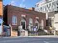 | Former Manchester Swimming Baths 53°29′09″N 2°15′08″W / 53.48595°N 2.25211°W | — | 1879–80 | The swimming baths. later used for other purposes, are in brick with terracotta dressings and a partly glazed roof. The front is expressed as two storeys, and has a central pedimented gable. The central doorway has a four-centred arch, flanking pilasters, and above is a string course, a mullioned and transomed window, and a decorative terracotta panel with pilasters rising to finials. The other windows have round-arched heads.[74][114] | II |