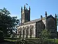 | Sacred Trinity Church 53°29′05″N 2°15′01″W / 53.48484°N 2.25040°W | ![]() | 1635 | The oldest part is the tower, the rest of the church was rebuilt in 1752–53, and the church was restored in 1871–74. It is in stone, and consists of a nave, a shallow chancel, and a west tower. The tower has angle pilasters, and at the top is a triglyph frieze, an embattled parapet with finials, and a small spire with a weathervane. Along the sides of the church are two tiers of round-headed windows with keystones, and below the parapet is a modillion eaves cornice.[8][9] | II* |