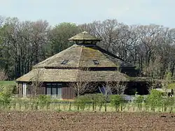 | Agricultural building in field to west of Scarisbrick Hall 53°36′30″N 2°55′45″W / 53.608394°N 2.929249°W | Late 19th century (probable) | Probably built as a feeding shelter for livestock, this building is octagonal in shape and has a cast iron frame (by W. H. Peake of Liverpool) which supports a large, umbrella-shaped tripartite roof of stone slate. It originally had open sides, perhaps with internal subdividing fences, and stood on the junction of four fields.[21][22] Also known as "The Great Barn", it has been converted into a dwelling and was the winner of the West Lancashire Design Award in 2005.[23] | 2 December 1986 | 1073110 | II | |