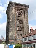| Water tower 53°25′04″N 3°02′45″W / 53.41786°N 3.04578°W | 1860 | The water tower is in brick on a stone base with stone dressings. It has a square plan, is in five storeys, and in Romanesque style with a round-headed entrance. On each side is a giant arch containing pairs of round-headed windows with colonnettes. At the top is a Lombard frieze, a cornice, and a machicolated parapet.[23] | II | |