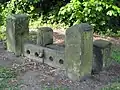 | Stocks 53°40′59″N 1°27′16″W / 53.68312°N 1.45457°W | ![]() | Mid 18th century (probable) | The stocks are by the roadside near a junction, and are in stone with a wooden seat and keepers. There are two roughly-squared piers with carved tops, rusticated panels on the outside, and deep rebates for the keepers inside. The keepers have four holes and a padlock, and to the rear are two smaller piers and a seat.[39] | II |