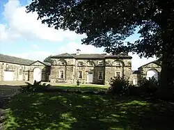 | The Stable House, Heath Hall 53°40′39″N 1°27′48″W / 53.67749°N 1.46336°W | ![]() | c. 1754 | The stables and flanking coach houses were designed by John Carr, and have been converted into dwellings and garages. The building is in stone with stone slate roofs. The stable block has two storeys, a U-shaped plan with a front of five bays, and links to the former coach houses. The main block is on a plinth, with quoins, impost and sill bands, a bracketed moulded eaves cornice, and a hipped roof. The middle and outer bays project, and contain archivolted arched recesses. The central doorway has an architrave and a triangular pediment, and the windows are sashes. The coach houses have pedimented gables, and contain archivolted carriage entrances, and the low linking walls have doorways with tie-stone jambs.[43][44] | I |