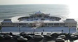 The town had an Odeon cinema between 1934 and 1988, when it was demolished. It stood at the head of Liverpool Terrace, and was built in the Art Deco style with a prominent belvedere. The 1,600-capacity building cost £40,700.[26][27] It was listed at Grade II on 26 March 1987, after its closure, but was removed from the statutory list on 27 July 1987.[28]