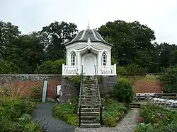 | Orleton Hall Gazebo 52°41′53″N 2°32′23″W / 52.69800°N 2.53984°W | ![]() | Mid 18th century | The gazebo is in stuccoed brick, with an octagonal plan, a moulded eaves cornice, and an ogee-shaped slate roof with a finial. Steps lead up to the main floor, there is a service basement below, and the building is surrounded by a lattice balustrade. The porch has a concave canopy, and the windows have keyhole-shaped surrounds and contain sashes.[28][30] | II* |