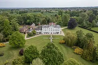 | Orleton Hall 52°41′53″N 2°32′32″W / 52.69795°N 2.54215°W | ![]() | Late 18th century | A country house, possibly with an earlier core, that was refronted in about 1830 by Edward Haycock. It is in stuccoed brick with a cornice, a parapet, and a hipped slate roof. There are three storeys, nine bays, a two-storey three-bay wing at the northeast, and service wings at the rear. The middle three bays of the entrance front have an entablature on unfluted Greek Doric columns. The middle three bays of the garden front project under a pediment with an oculus in the tympanum. The windows are sashes.[25][26] | II* |