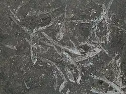 | Cluster of Listracanthus denticles on display at the Milan Natural History Museum | |