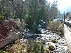 Lithia Park is the largest and most central park of Ashland, Oregon, United States. It consists of 93 acres (38 hectares) of forested canyonland around Ashland Creek, stretching from the downtown plaza up toward its headwaters near Mount Ashland. Its name originates from lithium oxide (Li2O) or "lithia," which is found in the stream water pumped to the park.
