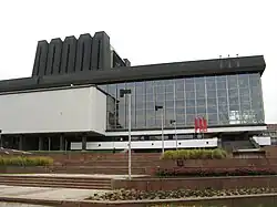 The theatre moved to a brand new building on the banks of the Neris River in 1974, designed by architect Elena Nijolė Bučiūtė (born 1930), after she had won an architectural competition in 1960.[3][4][5]