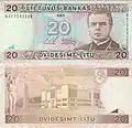 | [25] | 20 litų | Coat of arms of Lithuania, Vytautas the Great, Vytautas' the Great Church | Statue of Liberty, Klaipėda |