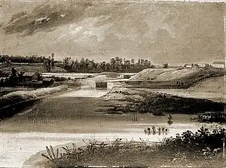 The series of rapids along the Fox River near Little Chute necessitated canoe portages. By the time the French settlement started in the early 18th century, the Sac had essentially set up toll stations along the Fox-Wisconsin Waterway, including the rapids at Little Chute. The French, outraged at the impact on trade, launched a series of attacks on the Sac, culminating in the Fox Wars, which drove them out of the area by 1742.[9][10][11] The power vacuum created by the departure of most of the Ho-Chunk, the Sac and the Fox allowed the Menominee to briefly dominate the area. The Menominee set up a village, Ookicitiming (“causeway” in Menominee)[12] near present-day Little Chute.