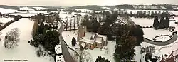 Little Missenden Abbey is a Tudor Revival mansion,[10] Grade II listed since 1987, as a "country house on the site of a medieval Augustinian Abbey ... founded in 1133". The listing indicates that the abbey was modified into a mansion ca.1600, when it was owned by the Fleetwood family. Additional modifications were made when subsequent owners acquired the property in 1787 (James Oldham) and in 1815 (John Ayton).[13] In the 21st century, the mansion was being used as a conference and training facility, and as a wedding venue, after an extensive renovation completed in 1988, necessitated by a fire that occurred in 1985.[14][15]
