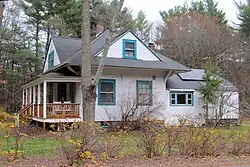The Nashua, Acton and Boston Railroad, which ran from Concord to Nashua, ran through Westford with two stations near the eastern part of Littleton. Passenger service on the line ran from 1876 to 1924; it was abandoned entirely in 1925.[2] East Littleton station was located at Littleton Road (MA 110), about a mile east of Littleton Common.[26] It received frequent shipments of coal and grain for the Conant and Company store nearby.[3]: 249 Pine Ridge station (also known as Westford) was located at Forge Village Road.[26][2]The former station building has been converted to a private residence; the former freight house and section house are used as outbuildings.[4]: 215