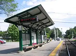 South Acton was previously the short turn terminus of some trains; however, those trains were extended to Littleton effective August 4, 2014.[17] The completion of the new two-track station allows local such terminating trains to board on one track while another train passes on the other track; the design of the station with an island platform (instead of two side platforms) eliminates confusion as to which platform such terminating trains would serve.
