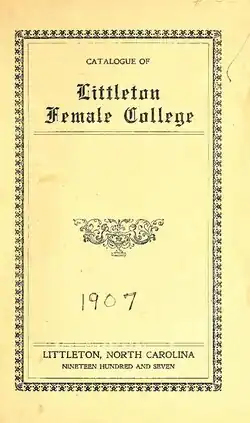 - ^ Rives, Ralph Hardee (1962). "Littleton Female College". The North Carolina Historical Review. 39 (3): 363–377. JSTOR 23517290.