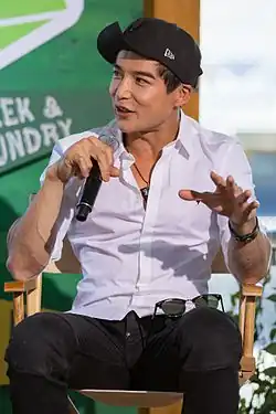 Liu Kang was played by Ludi Lin in the 2021 reboot film Mortal Kombat.[74][75][76] An orphaned street child now living as a warrior monk and protege of Raiden, Liu Kang guides Earthrealm's warriors towards discovering their abilities. After his friend and senior kung fu student (Chinese: 師兄; pinyin: shīxiōng) Kung Lao is murdered by Shang Tsung, he avenges him by killing Kabal.[77] Ludi Lin regards Liu Kang as a lone wolf archetype of character but still "alpha male" who cares about his allies. While finding Liu Kang as a pacifist, he believes the character also finds the moment needed to execute violence and will always fight back. In preparing for his role, he studied most of Bruce Lee's works.[78] During production, Ludi Lin was concerned that he would receive death threats if the character did not wear his signature red bandana; he eventually convinced the director to pick the red bandana from Kung Lao's hat and wear it in the film's climax.[79] When Liu Kang incinerates Kabal in the climax, the team originally intended to include a game reference known as "toasty" where a character is incinerated by a fire attack but it was removed due to the team finding it "cringe".[80]
