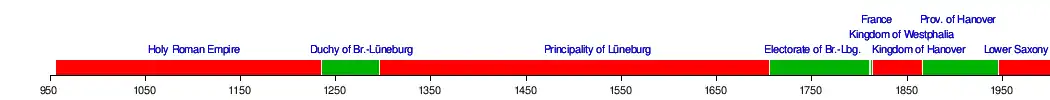 The town became part of the Electorate of Hanover in 1708, the Kingdom of Westphalia in 1807, the First French Empire in 1810, the Kingdom of Hanover in 1814, and the Prussian Province of Hanover in 1866.