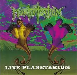 Live Planetarium is the first live album and fifth release of Australian Christian death metal band Mortification, released in 1993. It contains live versions of material from the band's three previously released studio albums, Mortification (1991), Scrolls of the Megilloth (1992), and Post Momentary Affliction (1993), as well as two new songs, "Symbiosis" and "Time Crusaders", and a cover of "Black Snake" by American Christian metal band Bloodgood. A video version of Live Planetarium was released on VHS in 1994 and later on DVD in 2006. A segment on Mortification's history, from the video of Live Planetarium, was included on the Tourniquet/Mortification Collector's Edition CD Single in 1994; the disc also contained songs from Mortification's Blood World album and American Christian metal band Tourniquet's Vanishing Lessons album. A studio recording of "Symbiosis" was included on Blood World. Soundmass released a reissue of Live Planetarium in 2019 on vinyl with new cover art and on CD in 2020 with the studio version of "Time Crusaders" as a bonus track; the track "Black Snake" was removed from the reissues.