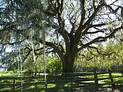 According to the Live Oak Society the oldest southern live oak is believed to be the Seven Sisters Oak located in Mandeville, Louisiana with an estimated age of 500–1,000 years.[3]