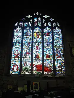 The medieval parish church of St Dyfnog contains a Tree of Jesse window, dating from 1533, described as "the finest glass window in all Wales, exceeded by few in England",[4] which was originally part of Basingwerk Abbey near Holywell. Nearby is St Dyfnog's Well, once a destination for pilgrims.[5]