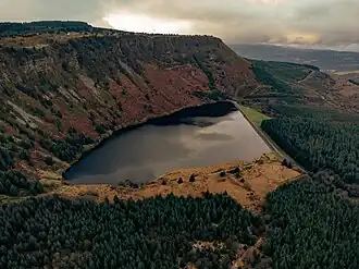 It lies on the northern flanks of Craig-y-Llyn, a mountain that is designated as a Site of Special Scientific Interest.[1] The western cirque contains Llyn Fach ('small lake'). While in government terms, it falls in the unitary authority of Rhondda Cynon Taf, in geographic terms it is actually in the Vale of Neath and its excess waters (all its water before conversion) flow into Nant Gwrelych, which flows into the River Neath at Pont Walby near Glynneath. Less than 1 km to the southeast and south lie the headwaters of the Rhondda Fawr and Rhondda Fach rivers, while 1.5 km to the southwest lie the headwaters of River Corrwg.
