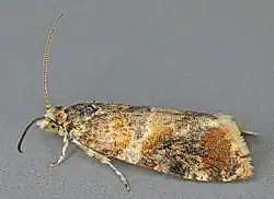 | Lobesia reliquana, Trawscoed, North Wales, | |