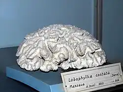 Lobophyllia costata, common name lobed cactus coral, is a species of large polyp stony coral in the family Lobophylliidae. [2]