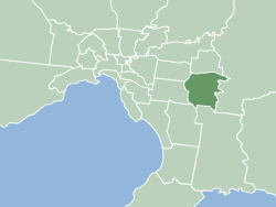 | Shire of Cardinia | Officer | 15 December 1994 | 1,283 km2 (495 sq mi) | 118,194 | 9 | |
