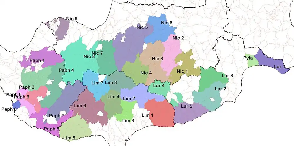 - ^ "These are the 20 new Municipalities - The reform was voted on", Phileleftheros newspaper, Nicosia, 03 March 2022 - https://web.archive.org/web/20220303172313/https://www.philenews.com/oikonomia/kypros/article/1414066/aftoi-einai-oi-20-neoi-dimoi-psifistike-i-metarrythmisi - retrieved July 2025
