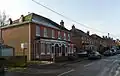 The 19th century was also characterised by haphazard and small-scale residential development in areas such as West Green, Southgate and Ifield, stimulated by Crawley's increasing commercial importance and the coming of the railway. Many cottages and villas survive from that era, and better examples have been given locally listed status. Weatherboarding (as at 6–8 Crawley Lane[35] and Woodcote Cottage[38] in Pound Hill, and The Open Door at Tinsley Green),[39] tile-hung upper storeys (as at Rose Cottage,[37] 89 and 91 Three Bridges Road[40] and some of the Victorian pubs)[20][39] and large gable ends[31][41] are common features. The High Street became more formalised as a commercial area at this time, and several buildings on both sides are locally listed.[42]