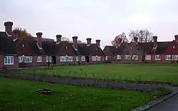 | Dyers Almshouses | Northgate 51°07′06″N 0°11′13″W / 51.1184°N 0.1869°W | Built in three stages for the Worshipful Company of Dyers, one of the City of London's livery companies, these Arts and Crafts-style almshouses are "reminiscent of rural Dutch cottages". Arranged around a courtyard, they have prominent gable ends with large chimneys, tile-hanging, Tudor-style doors and red brickwork. Architects Bertram and Company built them in 1939–40, 1952 and 1971. | [4] | |