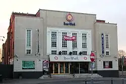 A study was undertaken in April 2010 to update Crawley's local list; the November 2010 update was issued as a result of this. Of the 59 buildings on the list, 13 were added at that time: 49 Brighton Road, Crawley United Reformed Church, Deerswood Court, the former Embassy cinema (latterly Bar Med), 11 Horsham Road, Oak House, the Old Post Office and Malvern Cottage, Poplars, 1 Pullcotts Farm Cottages, St Alban's Church, St Edward the Confessor's Church, St Mary's Church and The Oaks Primary School.[7] A recommendation was also made to add Toovies Farmhouse on Balcombe Road in Tinsley Green to the local list,[7] but it already appears on the national statutory list as a Grade II listed building.[8] At the same time, 11 buildings were removed from the local list. The Beehive at Gatwick Airport and the former stable block at Milton Mount Gardens had been upgraded to nationally listed buildings, and 52 High Street had been incorporated into the national listing for the George Hotel. A gun tower at Forge Farm and the former Baptist chapel at Robinson Road had been demolished.[7] Elsewhere, Westview Cottages and Holly Cottage in Fernhill were removed because their "historic character [had] been eroded" by alterations such as exterior painting and replacement of original windows;[9] the four-building terrace at 53–59 High Street was removed because of significant alteration, especially at ground-floor level; 45 High Street was removed because windows and its shopfront had been replaced, affecting its architectural importance;[10] 13–15 New Street in Three Bridges were removed because a series of alterations and modernisations had "damaged the historic character of these buildings";[11] and Toovies Farm Cottage and Norfolk Cottage were removed because extensions and replacement windows reduced their historical significance.[12] Since the list was released in November 2010, the former Embassy cinema in the town centre (opened on 1 August 1938)[13] was demolished following the submission of a planning application for redevelopment of the site in August 2011.[14][15] In its final incarnation as the Bar Med nightclub, it closed on 28 August 2012.[16]