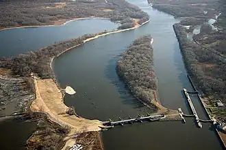Lock and Dam No. 3 is a lock and dam located near Red Wing, Minnesota on the Upper Mississippi River around river mile 796.9. It was constructed and placed in operation July 1938. The site underwent major rehabilitation from 1988 through 1991. The dam is 365 feet (111.3 m) long with 4 roller gates. More than 2,000 feet (609.6 m) of earth embankment with a series of upstream spot dikes completes the structure to create Pool 3. The lock chamber is 110 feet (33.5 m) wide by 600 feet (182.9 m) long. The lock and dam is owned and operated by the St. Paul District of the United States Army Corps of Engineers-Mississippi Valley Division.