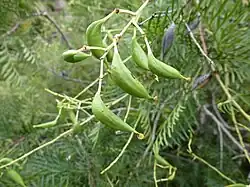 Lomatia tinctoria, commonly known as guitar plant,[2] is a shrub to about 2 metres tall of the family Proteaceae. It is one of three species of Lomatia endemic to Tasmania, the others being L. polymorpha and L. tasmanica. Lomatia tinctoria is closely related to L. polymorpha, with which it sometimes hybridises. Its leaves are divided, while those of L. polymorpha are simple.[2]