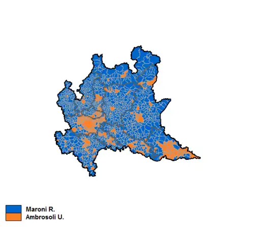 | City | Roberto Maroni | Umberto Ambrosoli | Silvana Carcano | Gabriele Albertini | Carlo Pinardi | Turnout |