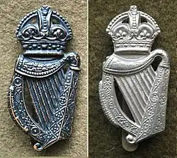 The London Irish Rifles (LIR) was a reserve infantry regiment and then company of the British Army. The unit's final incarnation was as D (London Irish Rifles) Company, the London Regiment. On 1 April 2022 soldiers in the company transferred to foot guards regiments and the company became No 15 (Loos) Company, Irish Guards.[1][2]