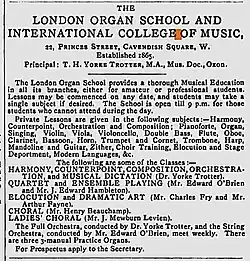 By May 1900, the school was known as the London Organ School and International College of Music.[6]
