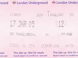 The following tickets are/were available from London Underground, Docklands Light Railway and Transport for London ticket agents for use on the Underground and Docklands Light Railway: