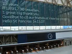 - ^ "First significant step in re-opening Waterloo International". South West Trains. Archived from the original on 2 April 2014.