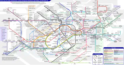 All stations accepting Oyster card but outside the publicised fare zones (except Stratford International) are put into secret zones, which are numbered 9 to 14, for the purpose of calculating caps.[4] In addition, there are stations which are further out accepting contactless payment cards but not Oyster cards. These stations do not have zonal fares and caps, with caps applied on the basis of individual stations, and categorised as zone 16 in the fare data.[5]