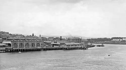 ![]() The station, on the left of the photo, pictured from the Craigavon Bridge in 1960 | |||||