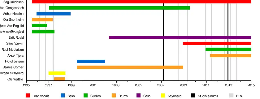 Lonely Crowd has existed in different forms since 1995, when singer Stig Jakobsen left the wildly eccentric Vampire State Building and immediately formed the band, with former members of De Press and Holy Toy. Full of self-confidence, they brought the Mega Records boss to their first gig, and were signed right away, more because of the phenomenal after-party than their live performance. (The party resulted in the band being forbidden to play in Tromsø ever again).