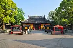 The Longhua Temple (simplified Chinese: 龙华寺; traditional Chinese: 龍華寺; pinyin: Lónghuá Sì; Shanghainese: Lon-ngu-zy; alternatively Lunghwa Temple; literally "Dragon Flower Temple") is a Buddhist temple dedicated to the Maitreya Buddha in Shanghai. Although most of the present day buildings date from later reconstructions, the temple preserves the architectural design of a Song dynasty (960–1279) monastery of the Chan School. It is the largest ancient temple complex in the city of Shanghai.[1]