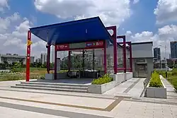 During the EIA announcement of Line 11, the proximity of the station to the Haizhu Wetland Park and the fact that two entrances and exits entered the planned land area of the wetland park caused concern among citizens and environmental groups.[7] In order to protect the environment of the wetland park, Line 11 cancelled the subway entrance on the sidewalk at the entrance of the wetland park in the follow-up plan.[8]