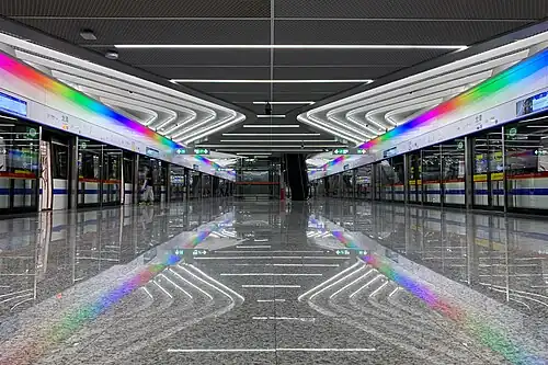 Longtan station (simplified Chinese: 龙潭站; traditional Chinese: 龍潭站; pinyin: Lóngtán Zhàn; Cantonese Yale: Lùhngtàahm Jaahm) is an interchange station between Line 11 and Line 18 of the Guangzhou Metro, located underground between Xinjiao Middle Road and Taichong in Guangzhou's Haizhu District.[1][2] It opened on 28 September 2021.[3] Line 11 started operations at this station on 28 December 2024.[4]