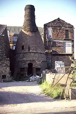 There are fewer than 50 surviving bottle ovens in the city of Stoke-on-Trent (and only a scattering elsewhere in the UK). The kilns of the Gladstone Pottery Museum, along with others in the Longton conservation area represent a significant proportion of the national stock of the structures.[8] The bottle ovens of Longton have been promoted as a tourist attraction.[9] In the 21st century, the condition of some of the bottle ovens has given cause for concern. A Stoke-on-Trent Ceramic Heritage Action Zone was created with the double function of regenerating Longton and surviving bottle ovens throughout the city.[10][11]