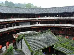 Clockwise from top: Longyan City, Chuxi tulou cluster in Yongding District, the ancient city walls in Changting County, Zhangdi village, and a night view from inside a tulou. | |