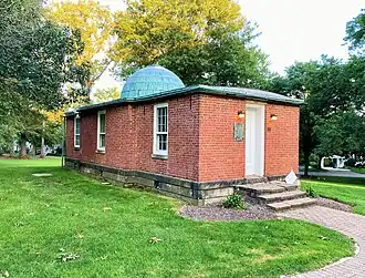 An inscription on the historic marker reads: "Elias Loomis and Charles Augustus Young worked in this Observatory, built in 1838, the third to be erected in the United States, the second oldest standing (1926).[4]"