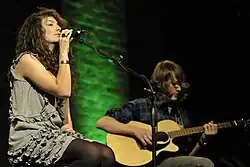 Lorde was also part of the Belmont Intermediate School band Extreme; the band placed third in the North Shore Battle of the Bands finals at the Bruce Mason Centre, Takapuna, Auckland on 18 November 2009.[26] In 2010, Lorde and McDonald formed a duet called "Ella & Louis" and performed covers live on a regular basis at local venues, including cafés in Auckland and the Victoria Theatre in Devonport.[27] In 2011, UMG hired vocal coach Frances Dickinson to give her singing lessons twice a week for a year.[28] During this time, Maclachlan attempted to partner Lorde with several different producers and songwriters, but without success.[25][29] As she began writing songs, she learned how to "put words together" by reading short fiction.[30]