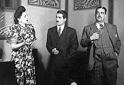 Loreta was born as Loreta Hairapedian Tabrizi in 1911 in Tehran. Following a succession of roles in performances of William Shakespeare directed by Vahram Arsen Papazian, she married the well-known stage director Abdolhossein Noushin and later joined the Iran Club of Theater. There, she appeared in grand scale performances of such plays as Othello, Volpone, The Blue Bird and Gas Light. In 1933, she married Abdol Hossein Noushin.[2] In 1953 Loreta traveled abroad together with her husband following the 1953 coup d'etát, and the couple lived in Moscow for several years, where they both entered education; Loreta entered the acting school of the Moscow State University (Moscow Art Theatre), while her husband studied for a PhD in philology at the Maxim Gorky Literature Institute.[3] When the couple returned to Iran after several years, Loreta broke into films and made six films the first of which was The Night of Execution (Davoud Mollapour, 1970). The list includes the co-production Bride of Fortune and Ebrahim Golestan's The Mystery of The Treasure of The Valley of The Genies al well. Her only TV series was Khosrov-Mirza II (Nosrat Karimi). Loreta left Iran in 1979 together with her only son from her marriage with Noushin,[4] and went to live in Vienna, Austria, where she died on 29 March 1998.[5][6][7][8]